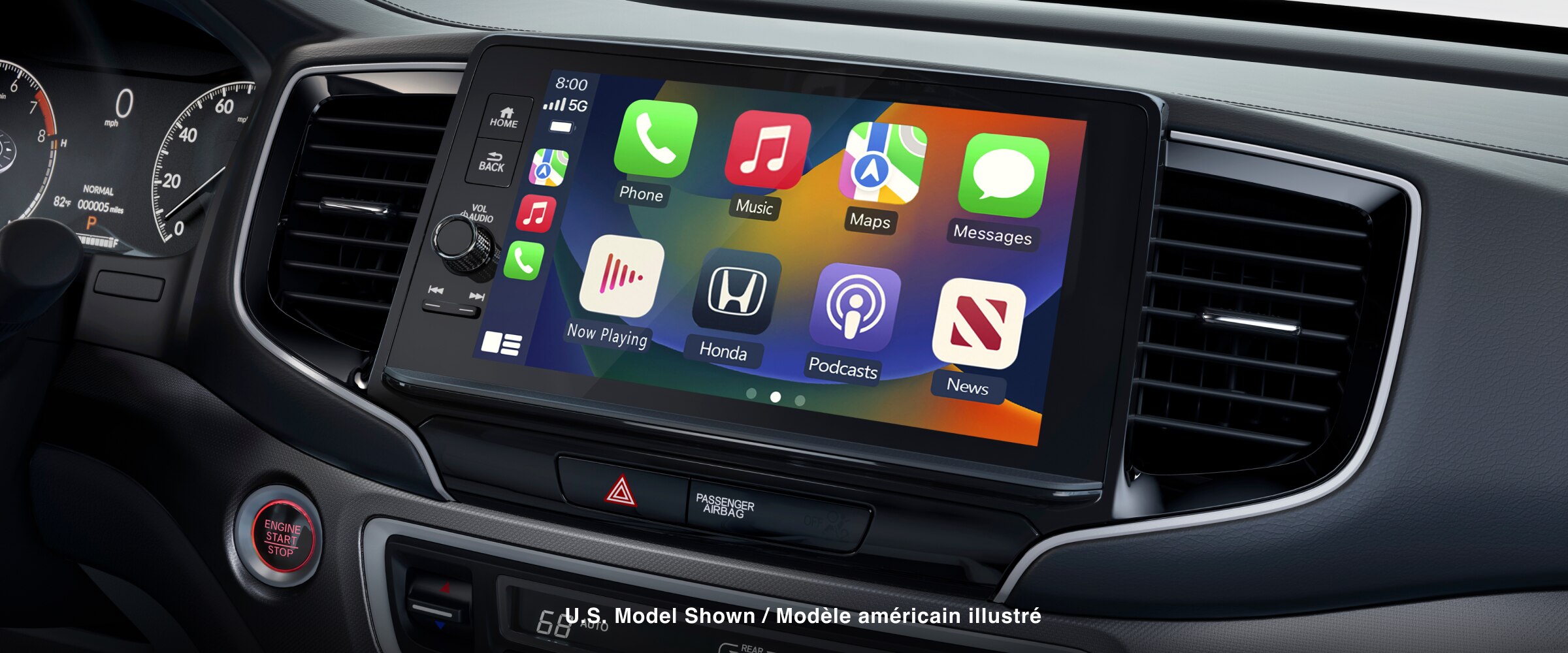 Your portal to the centralized system that controls your settings and the loads of tech features in your Ridgeline. Like, Apple CarPlay®* / Android Auto™*, HondaLink™ Connected Services*, the available premium audio system with 8 speakers including a subwoofer, and the available Honda Satellite-Linked Navigation System™* with bilingual Voice Recognition and Honda HD Digital Traffic.